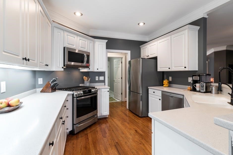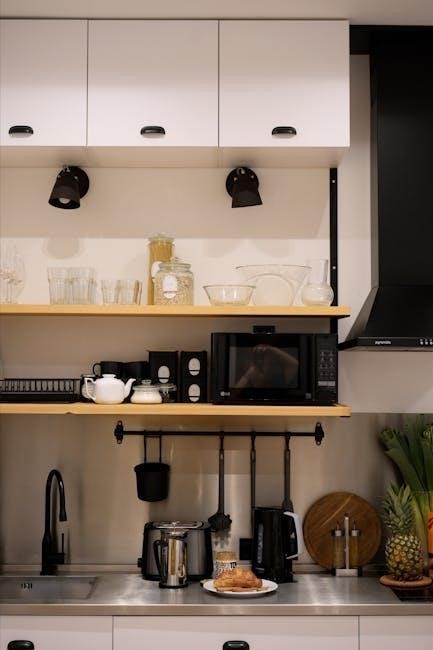 Key Buttons Explained: The ‘Start’ button initiates the cooking process, while ‘Stop/Clear’ halts operation and resets settings. ‘Power Level’ adjusts the microwave’s intensity, ranging from 10% to 100% for versatile cooking. Pre-set buttons offer convenient one-touch options for popular foods like popcorn or potatoes.
